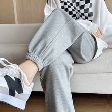 宽松束脚灰色运动裤女春秋显瘦卫裤2022新款秋冬加绒休闲哈伦裤子