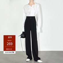 夏莫卡黑色阔腿裤女简约裤子高腰休闲长裤直筒裤灰色西装裤秋7508