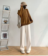 马西西微胖mm高腰显瘦毛呢直筒裤女冬季大码宽松阔腿裤子休闲长裤