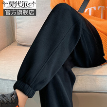 束脚运动裤女春秋2022新款大码冬季加绒女裤黑色裤子加厚休闲卫裤