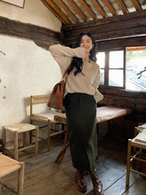 K姐自制 【针织羊毛裙】 60支美丽诺羊毛A字中长款针织半身裙女