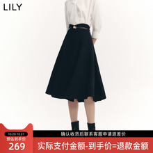 LILY2022秋新款女装气质黑色伞裙长裙高腰显瘦通勤A字半身裙