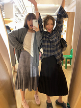 K姐自制 【风吹琴键】韩国绒压褶松紧腰中长款半身裙女