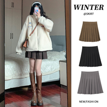 毛呢灰色百褶裙女秋冬遮肚半身裙2022新款潮高腰a字jk裙内衬短裙
