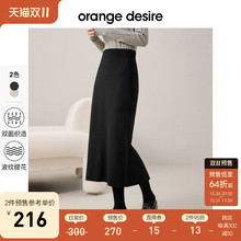 orange desire可机洗中长款针织半身裙女2022秋冬新款休闲直筒裙