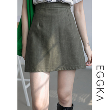 EGGKA复古小皮裙女高腰显瘦包臀半身裙秋季2022年新款黑色a字短裙