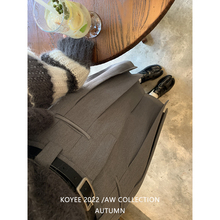 花田橱窗双腰带a字西装裙半身裙女秋冬加厚新款百搭高腰直筒中长