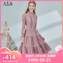 艾丽丝2022秋冬新款紫色灯芯绒连衣裙复古立领荷叶边中长款裙子女¥499
