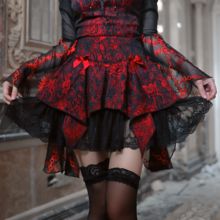 血液供给原创◆冥府之宴 提花哥特红黑蕾丝蝴蝶结蓬蓬半身裙夏季¥198