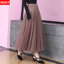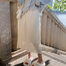 秋冬纱裙2022新款超仙网纱半身裙大摆裙中长款女显瘦蕾丝百褶长裙¥89