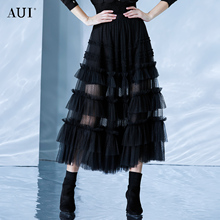 AUI黑色气质网纱半身裙女秋2022新款设计感高腰显瘦蕾丝蛋糕长裙¥399