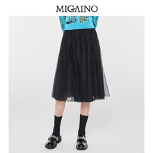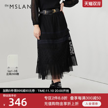 theMSLAN半身裙女秋冬蕾丝拼接时尚网纱中长裙子 MDAA8202¥509