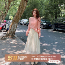 小个子蕾丝针织裙2021秋冬季新款女冬天裙子半身裙中长款温柔半裙¥66.8