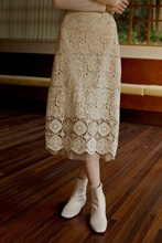 benxe 气质水溶蕾丝刺绣半身裙女秋季高腰设计感百搭中长款裙子¥159