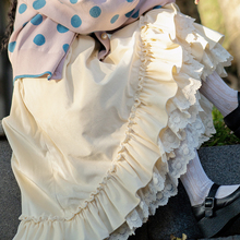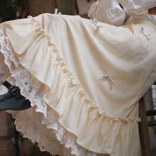 小葱良裁 米白色蕾丝半身裙女秋冬中长款松紧腰宽松荷叶花边A字裙¥169