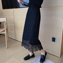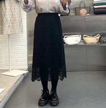 LICKYSENIOR现货秒发 弹力松紧腰黑色水溶蕾丝半身裙子包臀中长款¥269