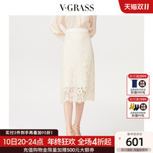 VGRASS STUDIO2022年秋季新款高腰修身A字裙中长款蕾丝半身裙女¥1019