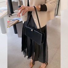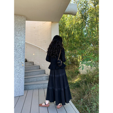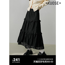 阔色松紧腰蕾丝半身裙2022秋季新款女设计感宽松黑中长裙子¥268