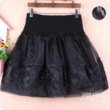 蕾丝短裙女秋冬a字欧根纱裙子半身裙蓬蓬裙大码松紧高腰打底半裙¥108