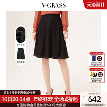 VGRASS维格娜丝2022年冬季新款黑色立体蕾丝A字伞裙半身裙女¥1362