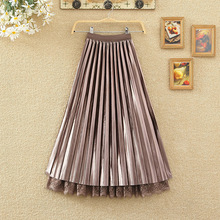 两面穿金丝绒半身裙女秋季复古高腰蕾丝网纱中长款百褶丝绒A字裙¥49.9