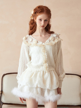 RECIT原创设计 “轻羽气泡”白色玫瑰蕾丝双层蓬蓬羽毛下摆半身裙¥368