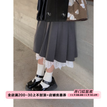 傲丝度高端垂感百褶裙女冬季新款蕾丝拼接高级感不规则小众半身裙¥419