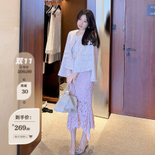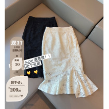 JUNS均哥哥白色包臀中长款蕾丝高腰鱼尾半身裙2022冬季(含羊毛)¥299
