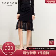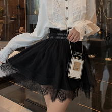 miss COCOONA字高腰裙秋装新款女装黑色性感蕾丝网纱半身裙¥569