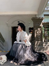 [WALKINDARK]夜魄~暗黑风高级感拼蕾丝黑白网纱中长半身裙女秋冬¥249.9