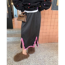 酒午自制法式复古2022秋冬黑色拼接白蕾丝边半身裙高腰直筒长裙女¥139