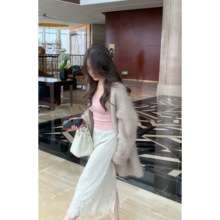 Mays属于秋冬的高端毛绒绒高腰蕾丝半身裙 中长款百搭包臀裙¥269.99