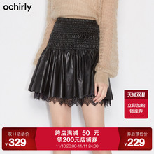 【抢先加购】欧时力秋新松紧蕾丝边高腰PU皮短裙半身裙1NY307015F¥459