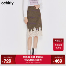 【抢先加购】欧时力新秋冬格子蕾丝边羊毛呢半身裙中裙1NH4075680¥999