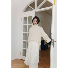 K.C.B 100%羊毛白色针织半身裙小个子法式蕾丝大摆高腰伞裙女秋冬¥188