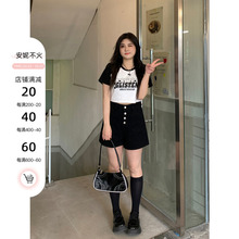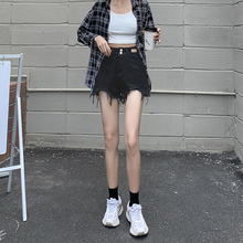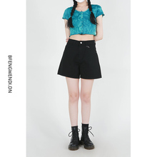 丹尼家2022春夏牛仔裤新品高腰黑色A字型休闲显瘦牛仔短裤女 韩版¥79
