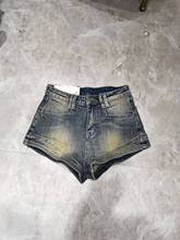 辣妹美式复古做旧牛仔短裤女2022早秋新款设计感高腰显瘦修身热裤¥70
