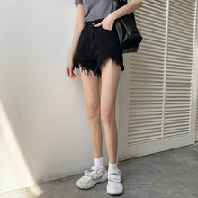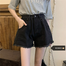 黑色牛仔短裤女秋冬大码胖mm学生宽松显瘦百搭阔腿毛边A字热裤潮¥19.8