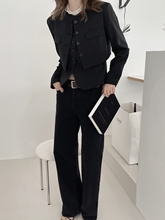 IQ时尚通勤 酷帅宽松牛仔裤+高级感短外套+气质马甲叠穿套装女¥99.99