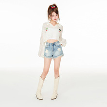 NIMO WANG 特殊工艺水洗做旧高腰破洞开衩遮肉牛仔短裤辣妹热裤女¥199