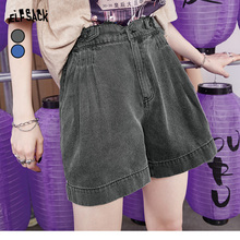 高腰牛仔短裤女2022年春季新款韩版宽松学生显瘦黑灰阔腿A字热裤¥59