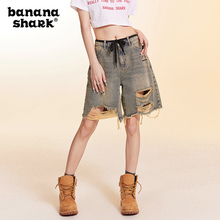 Bananashark【西部牛仔】辣妹破洞牛仔短裤美式复古休闲五分裤女¥219
