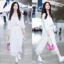 DALTT虞书欣明星同款白色超仙套装女春娃娃领上衣高腰雪纺阔腿裤¥1119