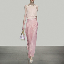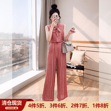 欧洲站夏装新优雅名媛气质露肩粉色挂脖雪纺衫时尚阔腿裤两件套女¥108