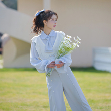 原创森女部落法式桔梗三件套奶系穿搭雪纺衬衫马甲休闲阔腿裤套装¥108
