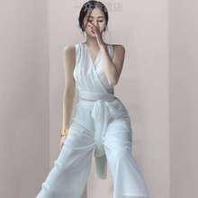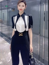 2022年夏季新款薄款背带裤套装气质雪纺立领衬衫阔腿裤两件套通勤¥169