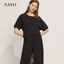 Amii极简雪纺上衣裤子套装女2022夏新款短袖T恤休闲阔腿裤两件套¥339.9
