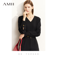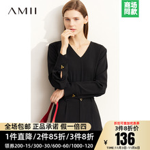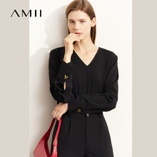 Amii2022秋新款衬衫套装女V领雪纺衫职业装时尚休闲阔腿裤两件套¥262.87