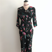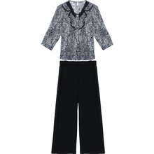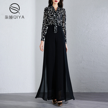 时尚套装女2022新款春秋印花雪纺衫衬衫黑色阔腿裤长裤气质两件套¥399