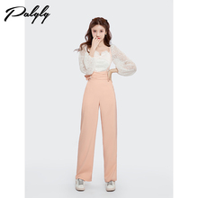 高腰显瘦休闲裤2022秋新款气质宽松阔腿裤甜美一字肩蕾丝雪纺衫女¥169